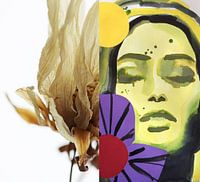 Moderne en kleurrijke combinatie van een waterverf portret en afbeelding van een bloem. Voor een exotische en zomerse uitstraling in het interieur!