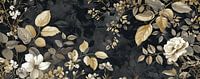 Details: flora, bloemen, bladeren, goud, beige, zwart, stillevens, natuur, verfijnd, tijdloos, Natuurlijk wonen