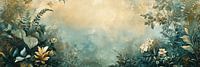 Botaniek - Dit natuur schilderij toont een sfeervolle, weelderige botanische tuin met diverse planten en bladeren in verschillende groentinten en accenten van crèmewit, wat een rustgevend en harmonieus beeld creëert.