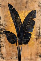 Abstract silhouet van een tropische plant. Op een natuurlijk beige ondergrond met gouden details.