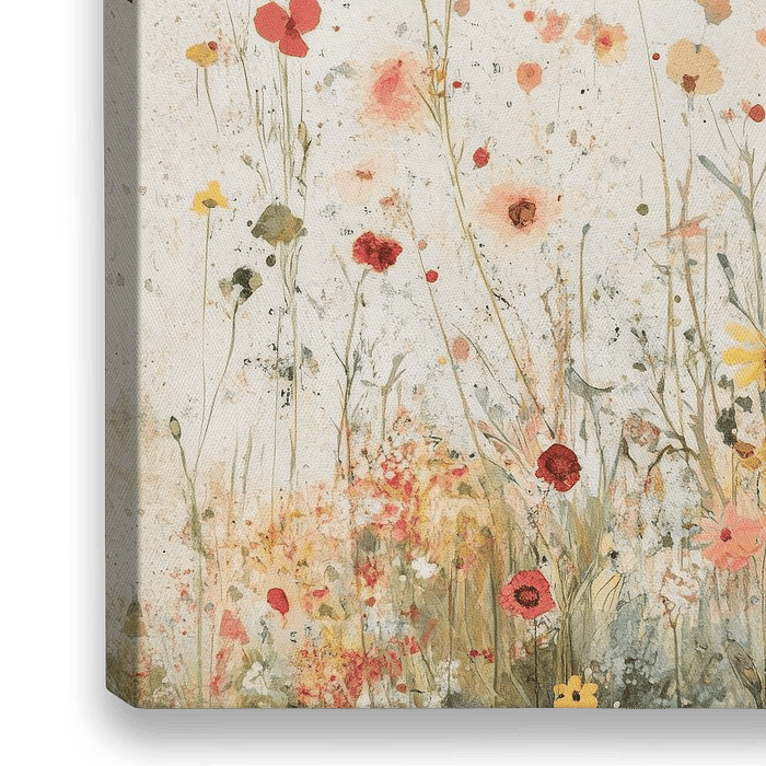 Botanisch aquarel, een mooie blikvanger voor je interieur! Een bloemenveld vol wilde bloemen en vlinders. Met dit werk haal je de zomer in huis!