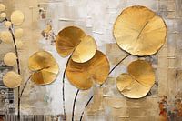 Dit kunstwerk, getiteld "Botanisch goud," straalt luxe en elegantie uit door de combinatie van botanische vormen en een warme gouden tint. De bladeren en planten zijn subtiel weergegeven in abstracte vormen, waarbij het goud zorgt voor een rijke, verfijnde uitstraling. De compositie heeft een minimalistische benadering, waarbij de eenvoud van de lijnen en vormen perfect in balans is met de glans van het goud. Dit schilderij brengt een gevoel van natuur en verfijning samen, ideaal voor het creëren van een stijlvolle en moderne sfeer in elke ruimte. Het is een perfecte keuze voor wie houdt van botanische kunst met een luxe twist.