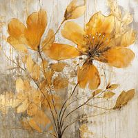Dit botanische werk in gouden tinten combineert natuurlijke vormen met een vleugje luxe. De subtiele bladmotieven en de warme gouden accenten creëren een elegante uitstraling die perfect past bij een stijlvol interieur. De delicate details en de glans van het goud brengen een gevoel van verfijning en sereniteit, terwijl de botanische elementen een verbinding met de natuur oproepen.