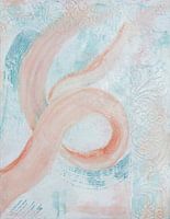 Botanical in Blue and Peach 3- Dit botanische abstracte acrylschilderij op canvas straalt rustgevend zacht aquablauw en zacht roze uit. De bloementexturen, gecombineerd met organische, vrije penseelstreken, creëren een werkelijk fascinerende ervaring voor de ogen en het hart. Met zeven schilderijen in deze liefdevol vervaardigde serie…