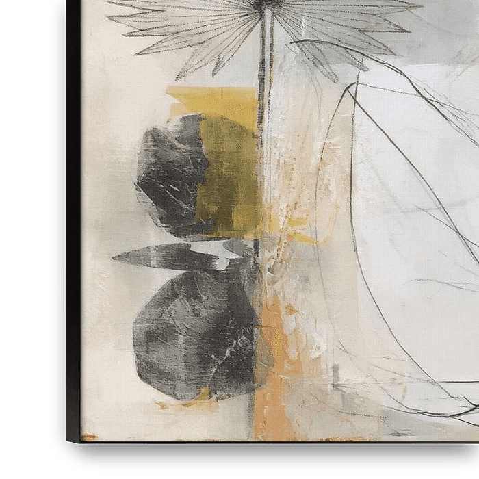 Breng rust en verfijning in je interieur met dit stijlvolle, abstracte kunstwerk waarin zachte tinten en organische vormen samenkomen. De gelaagde compositie, subtiele lijnen en botanische invloeden zorgen voor een kalme, luxe uitstraling die moeiteloos in verschillende woonstijlen past.