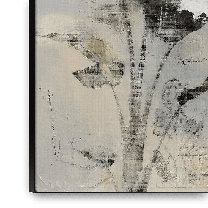 Breng rust en verfijning in je interieur met dit stijlvolle, abstracte kunstwerk waarin zachte tinten en organische vormen samenkomen. De gelaagde compositie, subtiele lijnen en botanische invloeden zorgen voor een kalme, luxe uitstraling die moeiteloos in verschillende woonstijlen past.