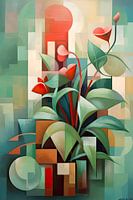 Das Bild zeigt eine Pflanze im kubistischen Stil. Die Darstellung ist abstrakt und dynamisch. Kräftige Farben betonen die Schönheit der Natur auf innovative und moderne Weise. Ein fesselndes Werk, das die Pflanze aus neuen Perspektiven zeigt und ihre Komplexität auf einzigartige Weise einfängt.