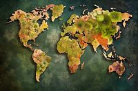 Deze wereldkaart bevat een stijl die is geïnspireerd door het plantenrijk. Met zijn aardse en groene tinten en is hij perfect voor ruimtes met veel planten. Of bij gebrek aan vegetatie kan het iets groens en levendigs toevoegen aan uw huiskamer.