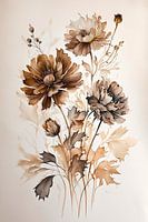 Een sierlijk schilderij dat de schoonheid van de natuur vastlegt in warme bruine tinten. Delicate bloemen in aardse nuances versmelten tot een harmonieus schilderij van botanische elegantie.