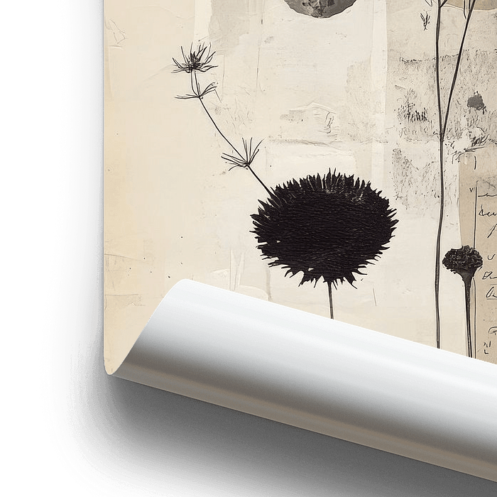 Botanische collage in Japandi stijl, aardetinten. Een bijzondere blikvanger voor je interieur! Kies zelf het formaat en materiaal bij dit werk.