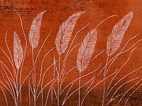Rustig mixed media schilderij van bloeiende grassen op linnen structuur.