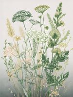 Botanische kunst met Fluitenkruid, wilde bloemen en grassen in het veld.