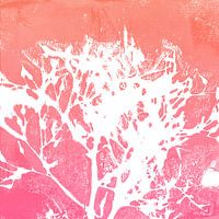 Moderne botanische semi-abstracte kunst. Gemengd media kunstwerk. Collage van een monotype afdruk van een echte plant met textuur en kleurbewerking.