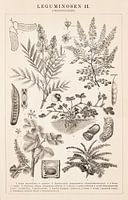 Op deze antieke prent uit ca. 1900 zien wij een aantal planten uit de vlinderbloemfamilie. O.a. aardnoot (pinda) en Johannesbroodboom.