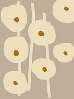 Over ‘Botanische schetsen. Witte en okergele Boho bloemen op grijs.’ van Dina Dankers