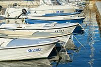 Boten van plaatselijke bewoners in de haven van de stad Krk aan de Adriatische Zee in Kroatië.