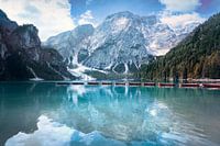 Boten in Braies of Prags meer of Pragser Wildsee en Dolomieten. Regio Zuid-Tirol, Italië, Europa.