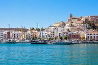 Uitzicht op de haven en de oude stad van Ibiza met kathedraal