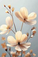 Deze kunstwerk toont een veld van gracieuze, pastelkleurige bloemen die zachtjes zweven in de bries, een ode aan de subtiele schoonheid en kwetsbaarheid van de natuur, uitgedrukt in een poëtische dansvertoning van tedere bloembladen en ranke stelen.