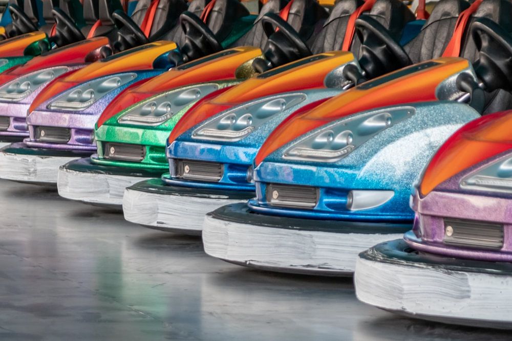 De prachtige kleurrijke botsauto's met hun lichtjes en intense kleuren brengen jeugdherinneringen weer tot leven. Rommelen, knallen, duwen en schuiven - of slechts één woord: botsauto's! ;)