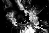 Botsende puzzelstukjes is een foto uit de serie: "puzzelstukjes". Op deze zwartwit foto botsen twee puzzelstukjes tegenelkaar, wat een dramatisch effect veroorzaakt.