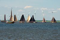 antieke Botters voor de kust zeilend bij Spakenburg hun thuishaven.