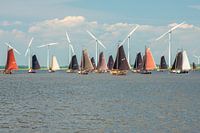 Antieke Botters voor de kust van Spakenburg in volle zeilen op het mooie Gooimeer