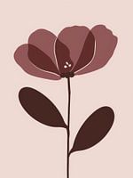 Een enkele gestileerde bloem rijst op een slanke steel tegen een zachte, neutrale achtergrond. De bloemblaadjes ontvouwen zich in gelaagde tinten bordeauxrood en oudroze, waardoor een rustig evenwicht ontstaat tussen gedurfde kleuren en een minimalistische vorm. De compositie richt zich op strakke organische vormen en open ruimte,…