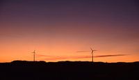 Een vurige avondhemel bij zonsondergang achter enkele windturbines in het Luxemburgse Bourscheid.