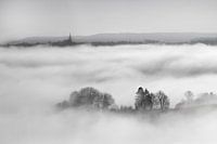 Vanaf de Gulperberg, heb je een weids uitzicht. Wanneer de dalen an ook nog gevuld zijn met wolken, wordt het bijna hemels. Aan de einder de kerk van Vijlen.