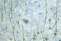 In een klein stroompje doorboorden groene sprieten de waterspiegel, waaronder veel blaadjes van het wijdvertakte drieblad zichtbaar waren.…