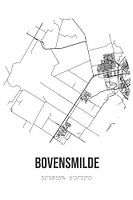 Zwart-witte landkaart, stratenplan of plattegrond van Bovensmilde. Bovensmilde is gelegen in de gemeente Midden-Drenthe, provincie Drenthe. Op de stadskaart zijn alle openbare wegen in Bovensmilde opgenomen. Verder is de kaart voorzien van de coördinaten van het centrum van Bovensmilde.