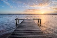 De Braassemmermeer bij zonsopkomst. Een populaire watersportlocatie met overal aanlegsteigers en een prachtig uitzicht over het water.