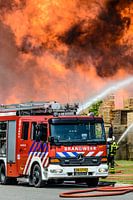 Brandweerauto voor een grote brand op het industrieterrein van Kampen.