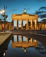 Reflectie van de Brandenburger Tor in de vroege ochtend