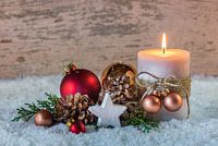 Brandende Advent en Kerst kaars licht, kerstballen, ster vorm van Alex Winter