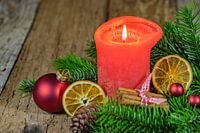 Brandende kaarsvlam met dennentakkenkrans van Alex Winter