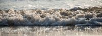 Liggend op het strand heb ik een serie close-ups van de branding gemaakt... Door de bijna ondergaande zon schijnt het licht mooi door het water.