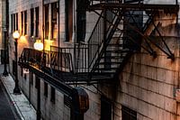 Het beeld doet mij denken aan zoveel veel Amerikaanse films en tv-series. Bovendien is de compositie zo, dat je denkt, ik spring erop, en trek de ladder naar beneden, naar het trottoir. En ziedaar, ik heb mijn vluchtweg.