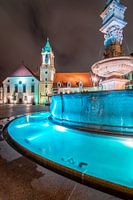 Stadhuis en Roland-fontein op het hoofdplein in Bratislava bij nacht