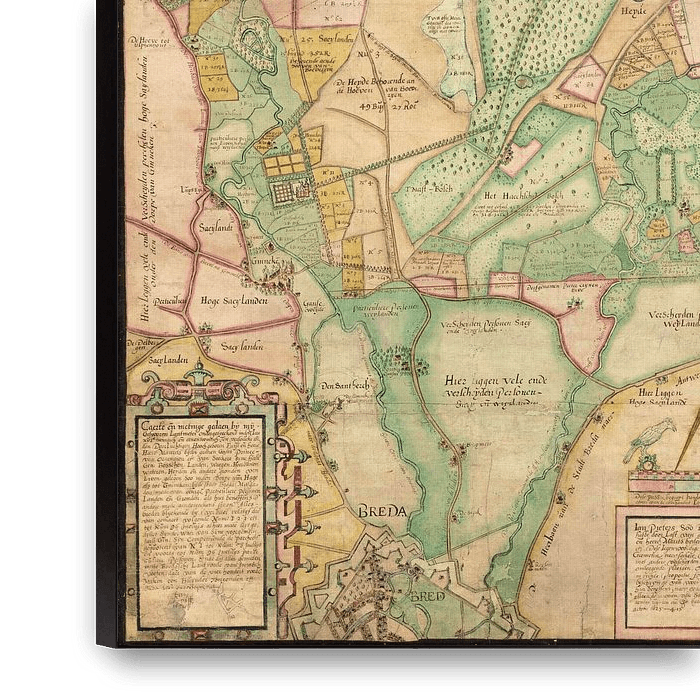 Koop Breda 1621. Kaart van Mastbos. Ginneken, Ulvenhout, Breda van Breda op canvas, aluminium dibond, (ingelijste) fotoprint, behang en ArtFrame, op maat geprint in Fine-Art kwaliteit.