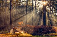 Breda Liesbosch met ochtendmist en zonnestralen 2021 op een flatcoated retriever