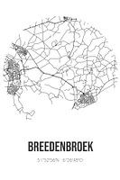 Zwart-witte landkaart, stratenplan of plattegrond van Breedenbroek. Breedenbroek is gelegen in de Liemers, in de gemeente Oude IJsselstreek, provincie Gelderland. Op de stadskaart zijn alle openbare wegen in Breedenbroek opgenomen. Verder is de kaart voorzien van de coördinaten van het centrum van Breedenbroek.