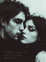 A.I. portret van een man en een vrouw die elkaar innig omarmen.
