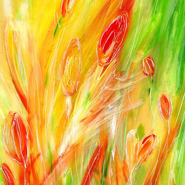 Een kleurrijk en expressief bloemschilderij voor de woonruimte met grafische elementen. Het straalt optimisme en vrolijkheid uit. De schoonheid van de natuur biedt steeds weer onuitputtelijke…