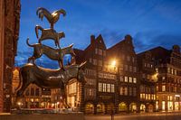 Bremen Stadsmuzikanten, Schemering, Bremen, Duitsland