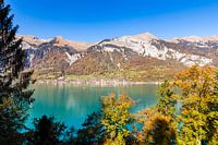 Uitzicht over het Brienzmeer naar Oberried, Berner Oberland, Zwitserland.