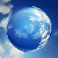 Een foto bewerkt tot een abstract werk. Iets wat lijkt op een heldere blauwe planeet in een heldere blauwe lucht. Het beeld roept het idee op dat het daar schoon en gezond is. De planeet lijkt voornamelijk uit water te bestaan. Je kunt je afvragen of daar leven mogelijk is. Verder is er enige lichte bewolking te zien. Mooi als print op glas, dibond of op canvas.