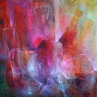 Glazen klinken op een vrolijk feest, er wordt iets gevierd, misschien een verjaardag, een huwelijk, Kerstmis, Nieuwjaar of een jubileum? Levendige kleuren worden weerspiegeld in het glas, de lichtreflecties zijn indrukwekkend. Veel gasten zijn samengekomen. Een stilleven dat goed past in de eetkamer.