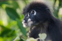 Portrait of two dusky leaf monkey’s in a tree looking away